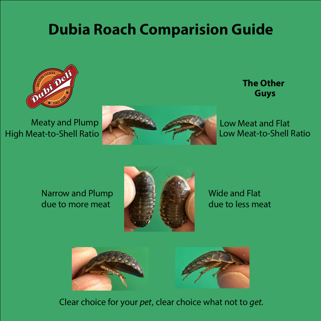 OK so, I had been a long time customer of dubiaroaches.com, However the past 2 years i had been struggling with various problems so I stopped getting my roaches from them. I was also really struggling to find quality roaches, in bulk, at reasonable prices, with reasonable shipping. AND THIS IS THEM. Fat dubia by weight. I paid $40 for what at my previous suppliers ( or worse PETSMART yuck !) would have cost me easily $75-100 if not more. To compare, 1/4 lb was like almost 1000 small/ medium roaches. They all arrived alive, fat and healthy. This place is my new go to, and at the rate my 3 leopard geckos, 1 bearded dragon, 2 toads, and 4 whites tree frogs go through roaches - it wont be long till im Re-upping my order. Thanks so much guys, yall are awesome !